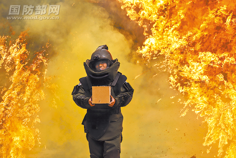 8月22日,武警山西总队吕梁支队组织特战分队进行排爆演练。图为排爆手在转移“爆炸物”。曹正玉 摄