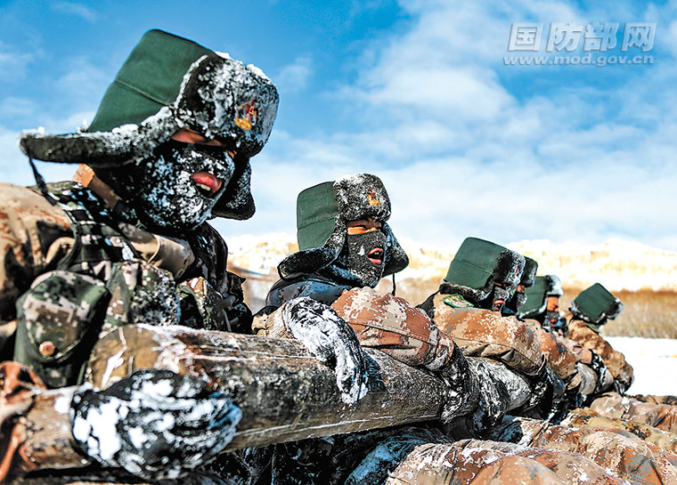 隆冬时节,阿里高原气温降至零下30多摄氏度。驻守在海拔4300多米的西藏阿里军分区某边防团达巴边防连官兵不顾严寒缺氧,展开体能、智能、技能的极限比拼,锤炼恶劣环境下遂行任务能力。图为官兵进行抱圆木仰卧起坐训练。刘晓东摄