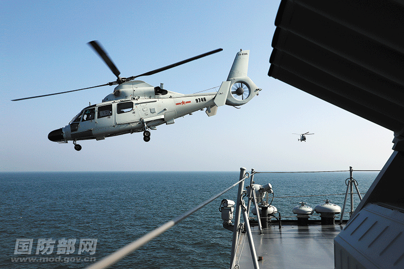 北部战区海军某驱逐舰支队与某舰载直升机团协同开展训练