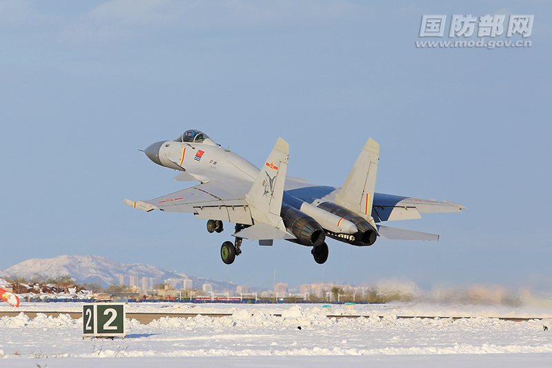寒冬,海军航空大学某基地开展飞行训练。姜 涛摄