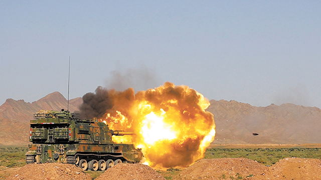 2024-06-09 08:27新疆军区某火力团开展实弹射击训练