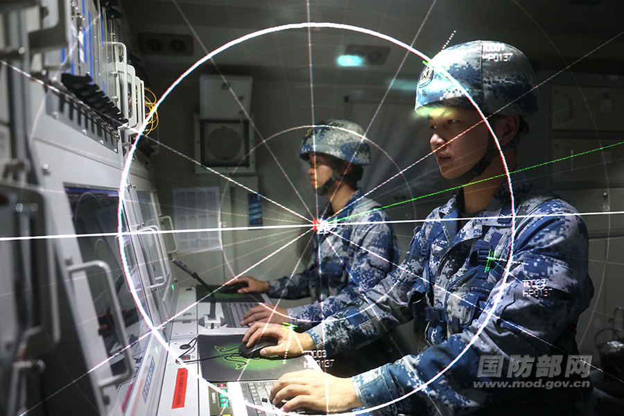 雷达操纵员研判空情,迅速捕获“敌”目标。
