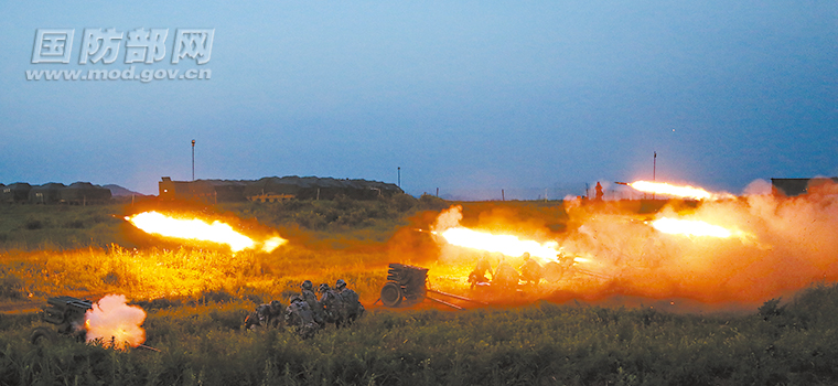 七月十二日至十三日,空降兵某旅组织所属炮兵分队进行实弹射击,重点检验各级指挥员指挥技能、分队战术融合和火力打击能力。图为炮群射击。方超 摄