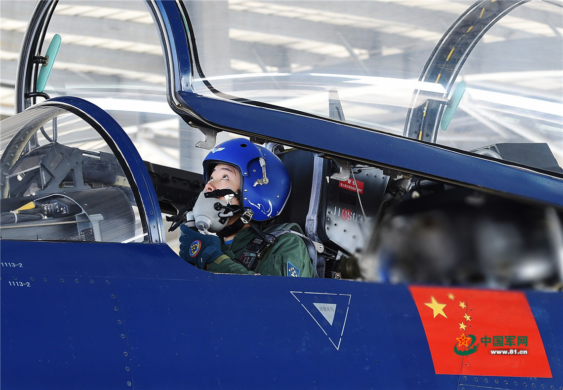 4月10日飞行日,飞行员何晓莉在座舱盖落下前再次检查飞机状态。柳军 摄