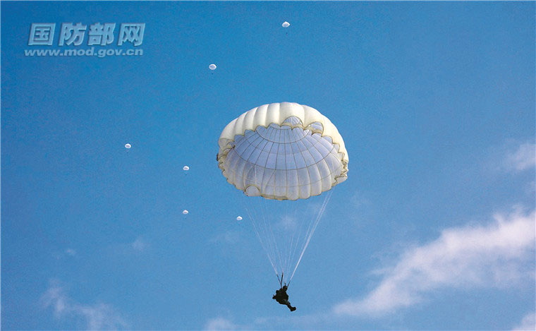 新兵迈出勇敢一步,空中绽放朵朵伞花。