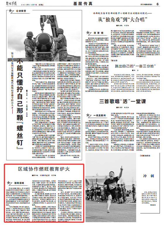 区域协作、资源共享,燃旺教育炉火,不仅满足了官兵学习需求,更激发了大家参与热情。某导弹营教导员说:“现在站在讲台上授课的,不再总是我们这些老面孔,课堂充满了新鲜感,大家充满期待、收获满满。”