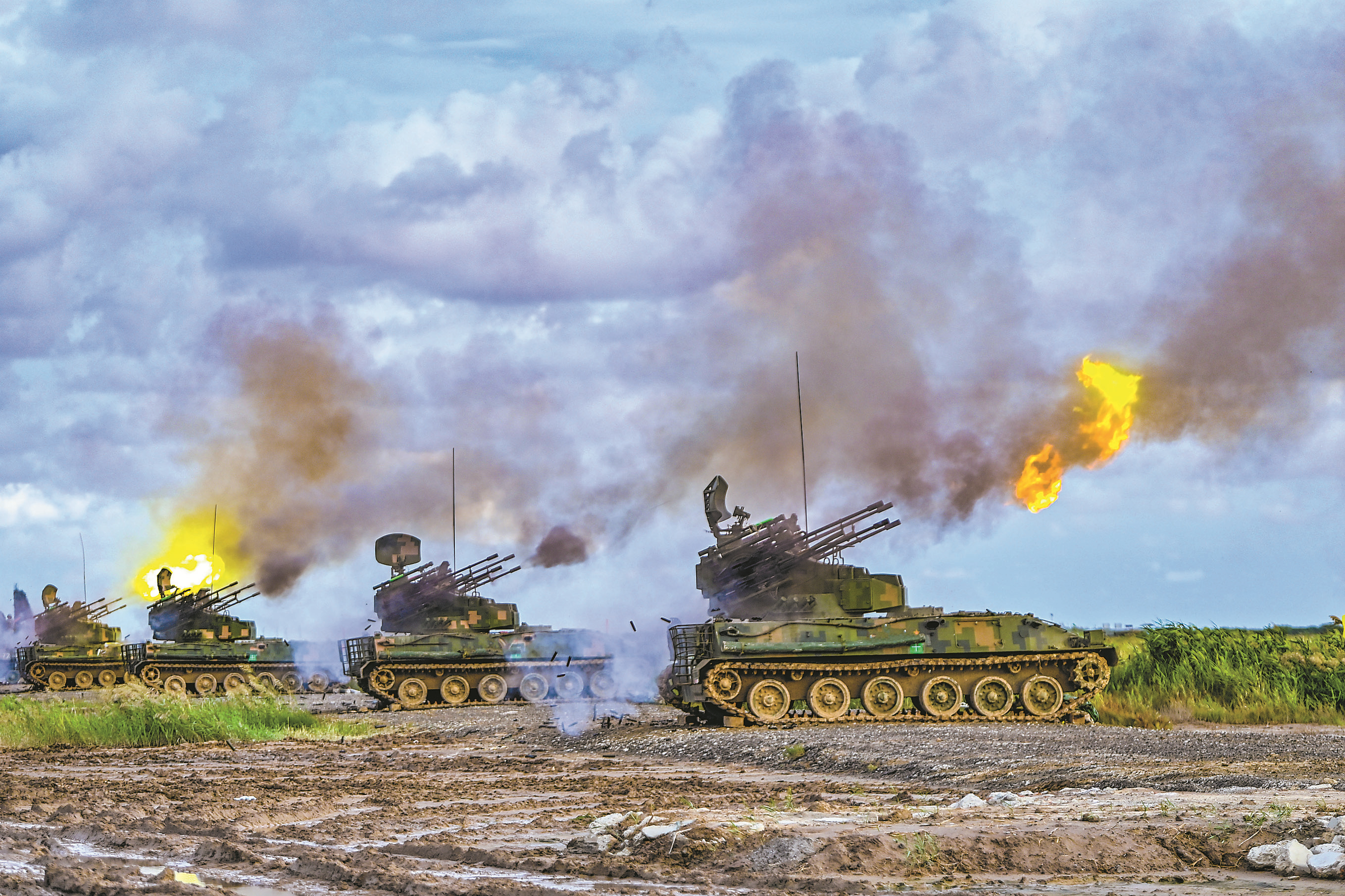 秋日,陆军某旅防空分队开展实弹射击训练。林蔚鸿 摄