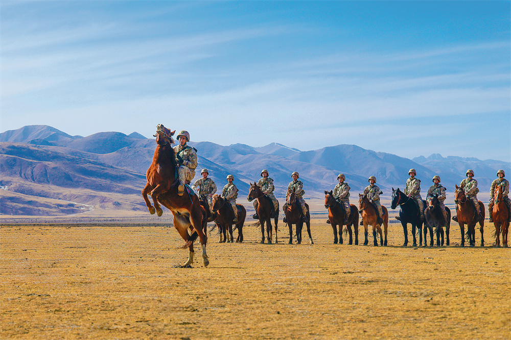 夕阳把草原染成了金色,骑兵们收马归营,此起彼伏的铿锵蹄声回荡在雪山之间。日复一日的体能淬炼,让骑兵连的官兵练就了“人马合一”的深刻默契,在巴塘草原上书写着属于骑兵的坚守与冲锋。