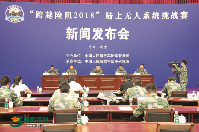 10日上午,由陆军装备部主办、陆军研究院承办的“跨越险阻2018”第三届陆上无人系统挑战赛在陆军研究院装甲兵研究所举行新闻发布会。陆军装备部科研订购局副局长唐进介绍了比赛总体情况,陆军研究院装甲兵研究所所长李胜利介绍了赛事科目设置等具体赛况。
