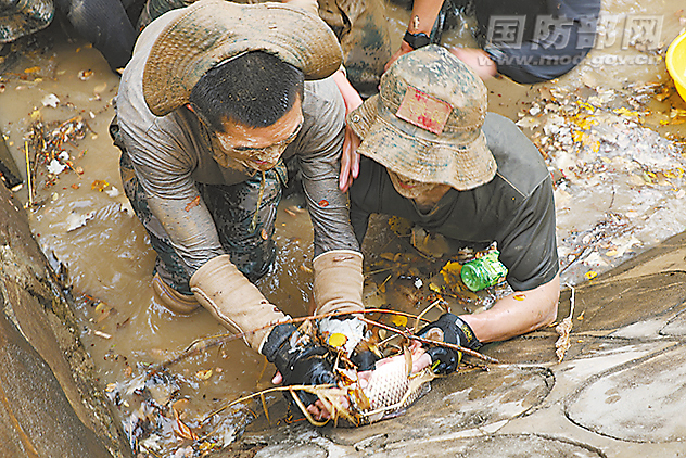 冰水的“洗礼”是“魔鬼周”的必修课。这个被称作“浑水摸鱼”的课目,要求队员们抓住教练员提前放置在浑水沟中的20多条鲤鱼。