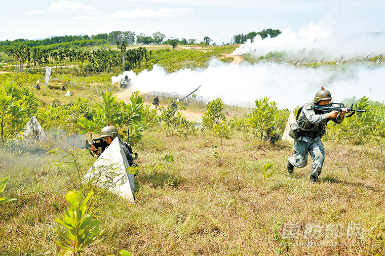 该旅实兵对抗演练中,红方队员发起进攻。谢炜摄