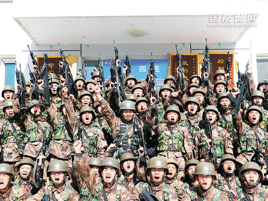 新兵四连官兵在三面流动红旗下合影。作者提供