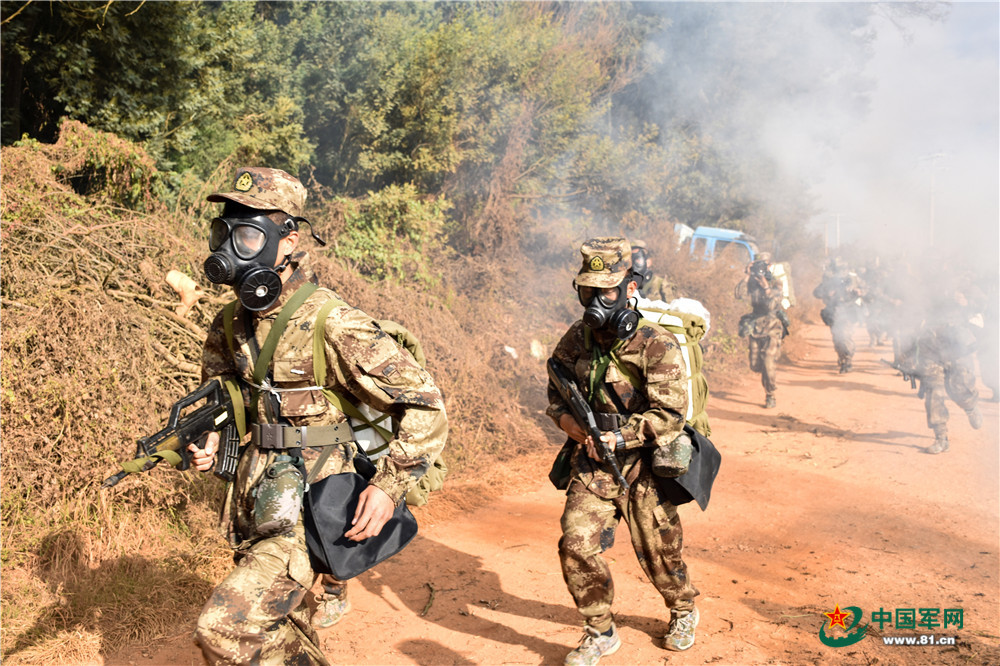 “前方100米处发现‘敌’生化袭击,立即进行防毒!”正当新兵行进至某陌生地域时,突然升起的一阵浓烟,挡住了新兵们前进的道路。