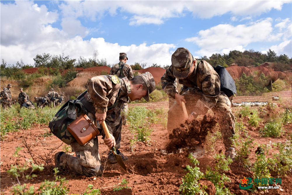 处置多处“敌情”后,疲惫不堪的新兵终于到达第一个调整点。“敌空袭,迅速隐蔽!”正在“享受”短暂休息的新兵不得不迅速整理装具,起身又投入到新的“敌情”处置中。