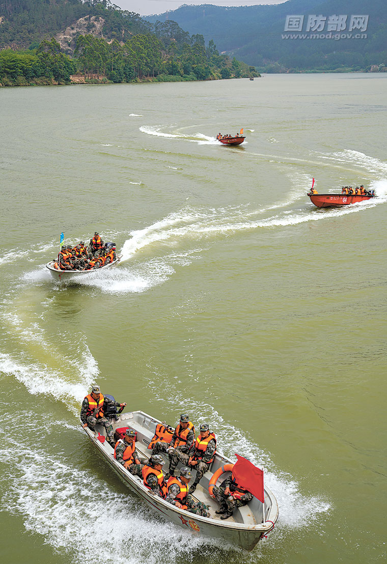 4月9日,第73集团军某旅组织工兵分队开展冲锋舟编组训练。 郑毅 摄