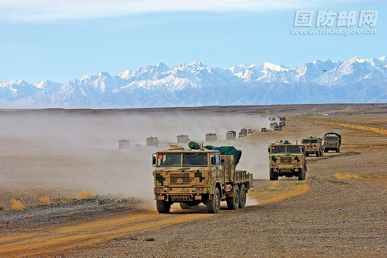 第77集团军某旅在戈壁荒漠组织机动演练