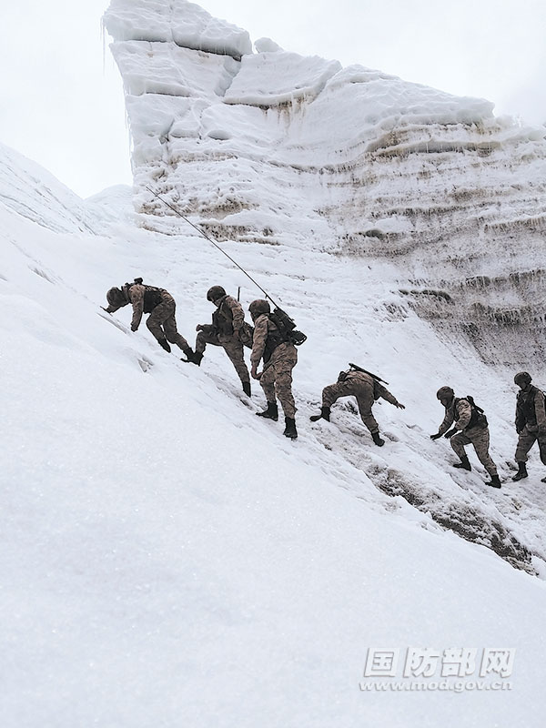 西藏军区岗巴边防营官兵翻越冰川执行巡逻任务