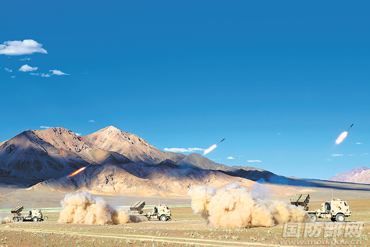 仲秋时节,新疆军区某团在海拔4500米的高原地区开展多弹种实弹射击考核,检验部队火力打击能力。