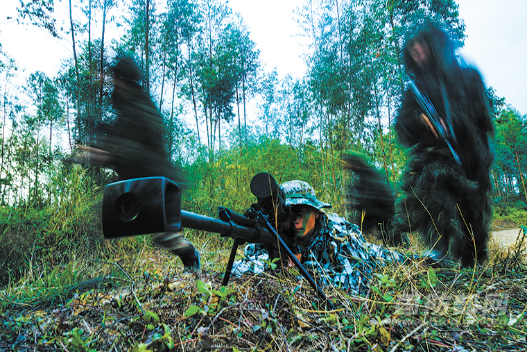 第73集团军某旅侦察营武装侦察连狙击小组展开战术训练。赵枭涵、赵 萌摄