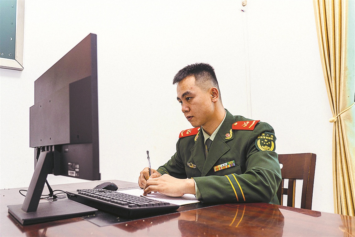 该支队勤务保障中队班长苏汉正在向“云端智囊团”请教。唐永祺摄
