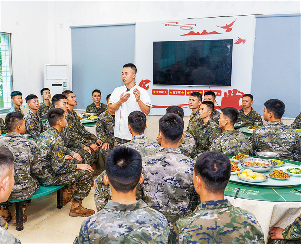 食堂里悄无声息,官兵望着盘中的炒面,陷入沉思。这是杨广行本月为战友们带来的第三堂红色教育课。每周五下午,他会精心挑选几种食材,让战友们在沉浸式体验中,深刻感受红色传统的魅力与力量。