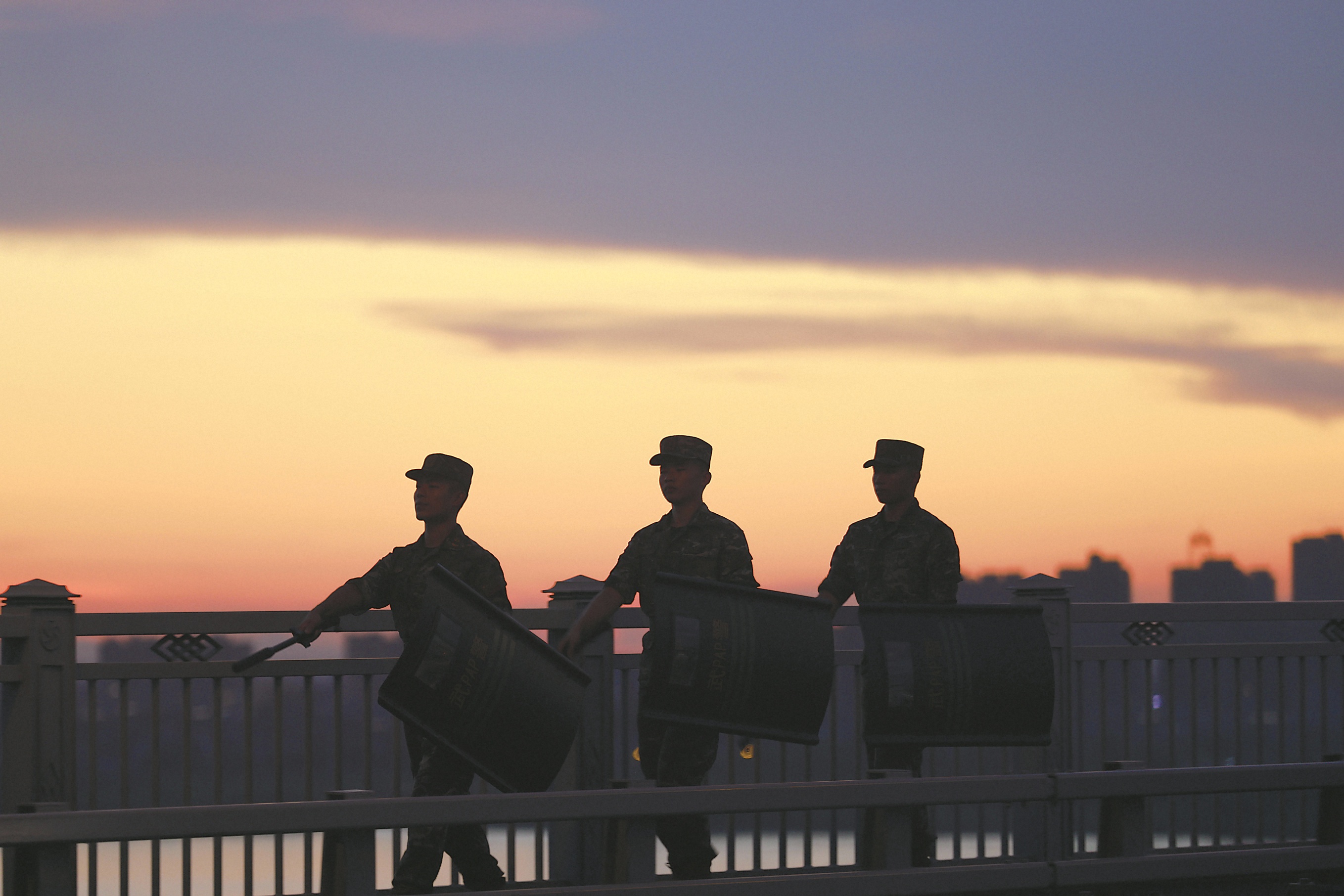 巡逻路,是从攀爬9层桥头堡开始的。当跟随执勤一大队官兵登上大桥顶层的公路桥面时,我身上的迷彩服已被汗水浸成了深绿色。