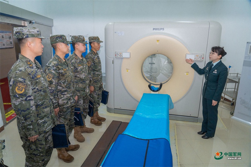 参训官兵前往友邻单位参观见学,实地了解医疗设备与卫勤保障模式。施晨洲 摄