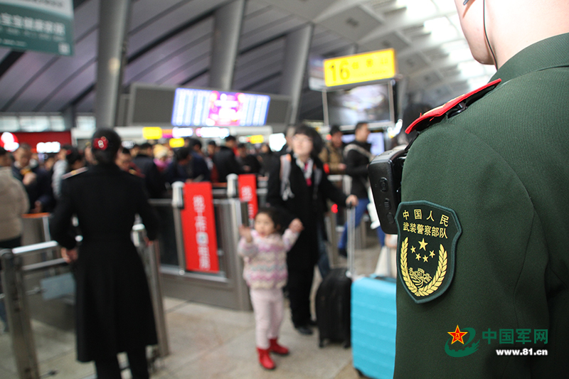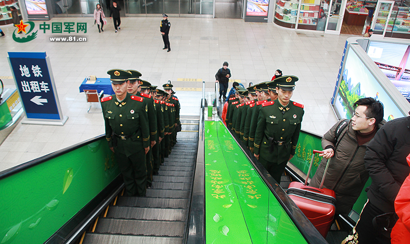 武警北京总队执勤第三支队担负此次北京南站春运维稳任务。 姜瀚摄