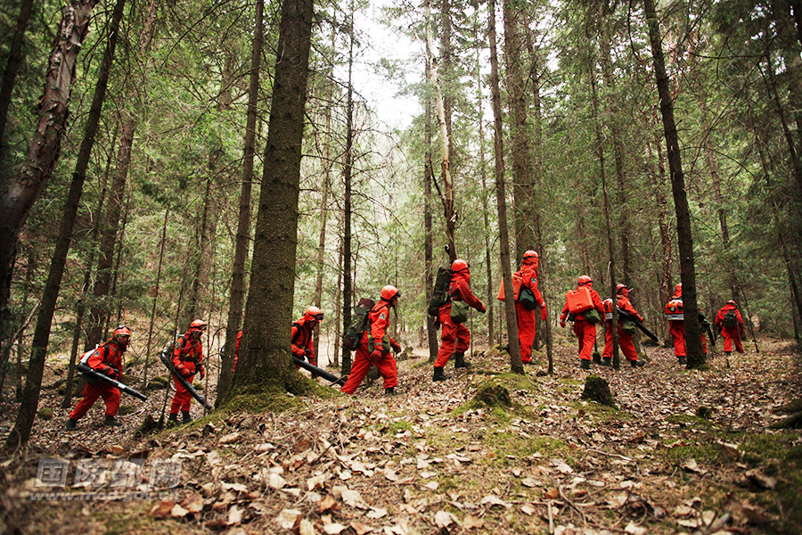 开展勤务训练的官兵在茫茫林海间穿梭。清明节临近,加之春季气候干燥、林区活动人员增多,不当用火行为时有发生,驻防官兵定期在管护区开展勤务训练,及时发现和排除安全隐患。