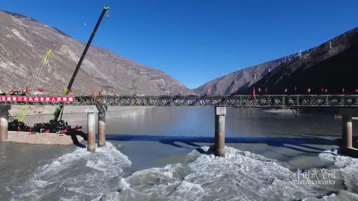 据在现场指挥抢建工作的武警某部交通三支队支队长陈军介绍,金沙江大桥是318国道的咽喉要道。桥梁的断通给四川和西藏两岸人民的生活和出行,造成了严重影响。部队受领任务后,武警部队各级首长高度重视,并安排指导组到现场进行督导,及时从交通三支队和交通二支队抽组抢修抢建突击队。在作业过程当中,官兵们严格按照交通部专家组确定的技术方案进行作业,发扬不畏艰难险阻,不怕流血牺牲的精神,克服高寒缺氧,昼夜温差大的不利天候和桥下湍急的水流和桥上高空作业风大等不利因素,不顾疲劳,连续鏖战,通过军地齐心协力,仅仅利用7个昼夜,就完成了主桁架桥的合龙工作。