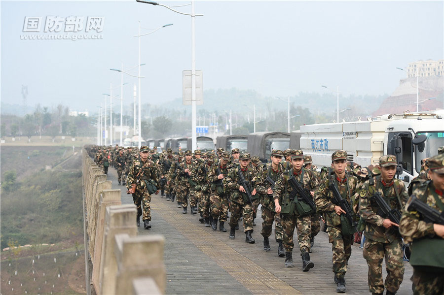 1月2日,拉练途中,武警重庆总队官兵士气高昂。曹峰 摄