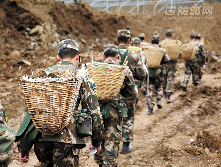 官兵帮助马尔康市丹波村群众建设蔬菜大棚。