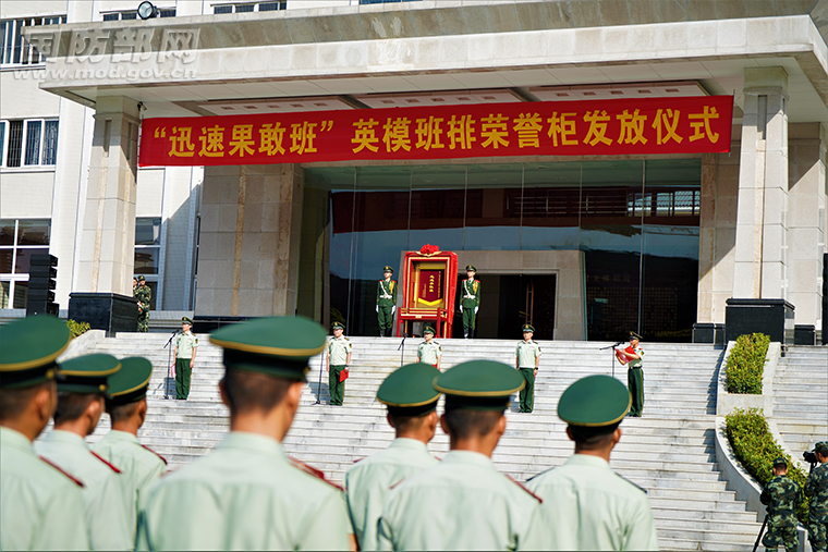 传承红色基因,砥砺强军斗志。日前,中央军委政治工作部对全军获得重大历史荣誉的首批100个英模班排,统一制作颁发荣誉柜,武警广东总队机动支队某部“迅速果敢班”获此殊荣。近日,该部举行荣誉柜发放仪式,激发官兵崇尚荣誉、珍惜荣誉、争创荣誉的强军热情。