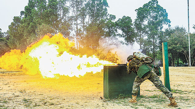2024-04-30 22:38武警第二机动总队某支队防化分队开展喷火训练