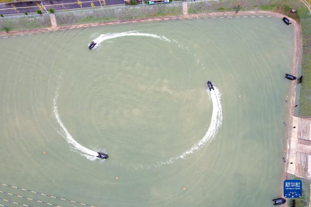 武警部队第二机动总队某支队五中队开展水上课目训练,官兵驾驶橡皮艇呈环形队形(2023年9月13日摄)。新华社发(周小波 摄)
