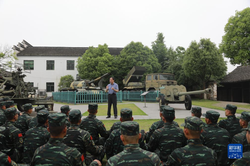 武警部队第二机动总队某支队五中队邀请老指导员给官兵讲述“常胜”故事(2021年5月13日摄)。新华社发(张真荣 摄)
