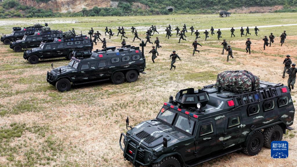 在实战化演练中,武警部队第二机动总队某支队五中队官兵快速登车(2023年9月14日摄)。新华社发(张真荣 摄)