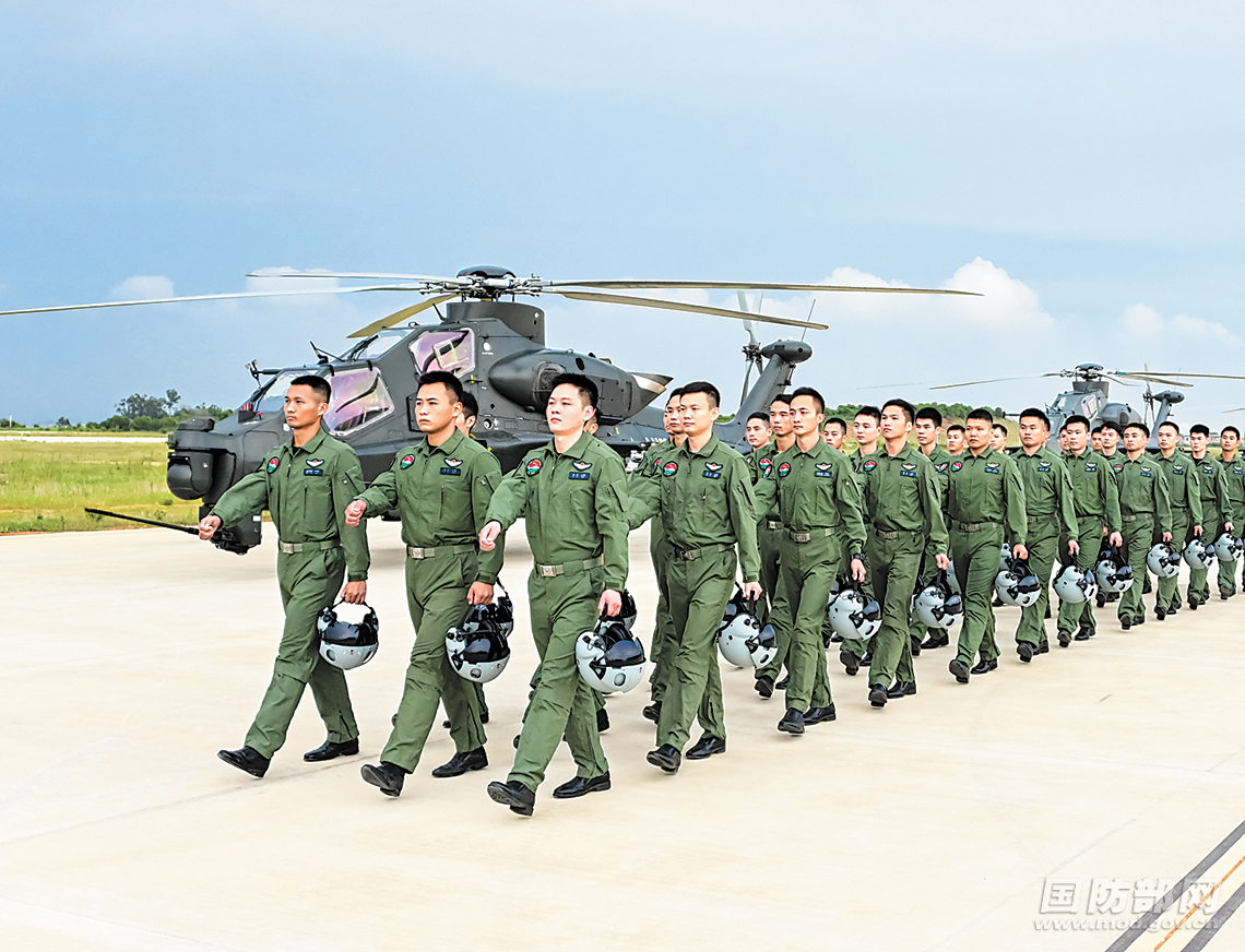 “起飞!”随着指挥员一声令下,某陆航旅数架直升机盘旋升空,完成战术编组后迅速向预定海域飞去。