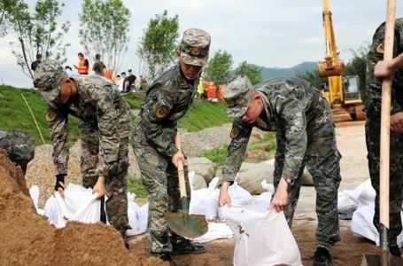 4月20日上午,广东省韶关市因暴雨出现洪涝灾害。火箭军某部官兵闻令而动,按照防汛应急处突预案,抽组精干保障力量,携带救援物资,由100名官兵分别从两个方向,前往受灾地域,协助开展转移被困群众,抓紧抢修受损道路,积极参与救治受伤人员。