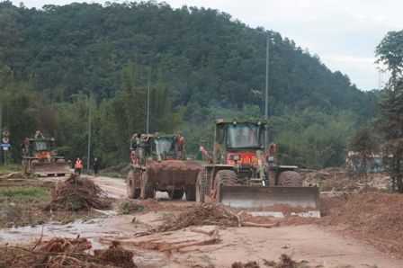 因暴雨导致道路塌方、桥梁受损,车辆和工程装备无法进入。该旅派出先遣组徒步跋涉8小时,分两个救援小组进入江湾镇两个行政村展开搜救和转移被困群众工作。同时,外围道路抢修队完成约27公里的道路疏通任务,打通了前往灾区的生命通道。