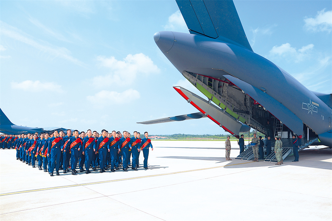 解放军报北京8月1日电 蒋华峰、记者李建文报道:旌旗漫卷、战鹰列阵,数百名青年昂首挺立,一场承载热血与梦想的青春之旅拉开帷幕。8月1日起,空军连续两天使用多架运-20从沈阳、石家庄、济南、南京、长沙和成都6个登机点,集中运送新录取飞行学员赴空军航空大学报到。