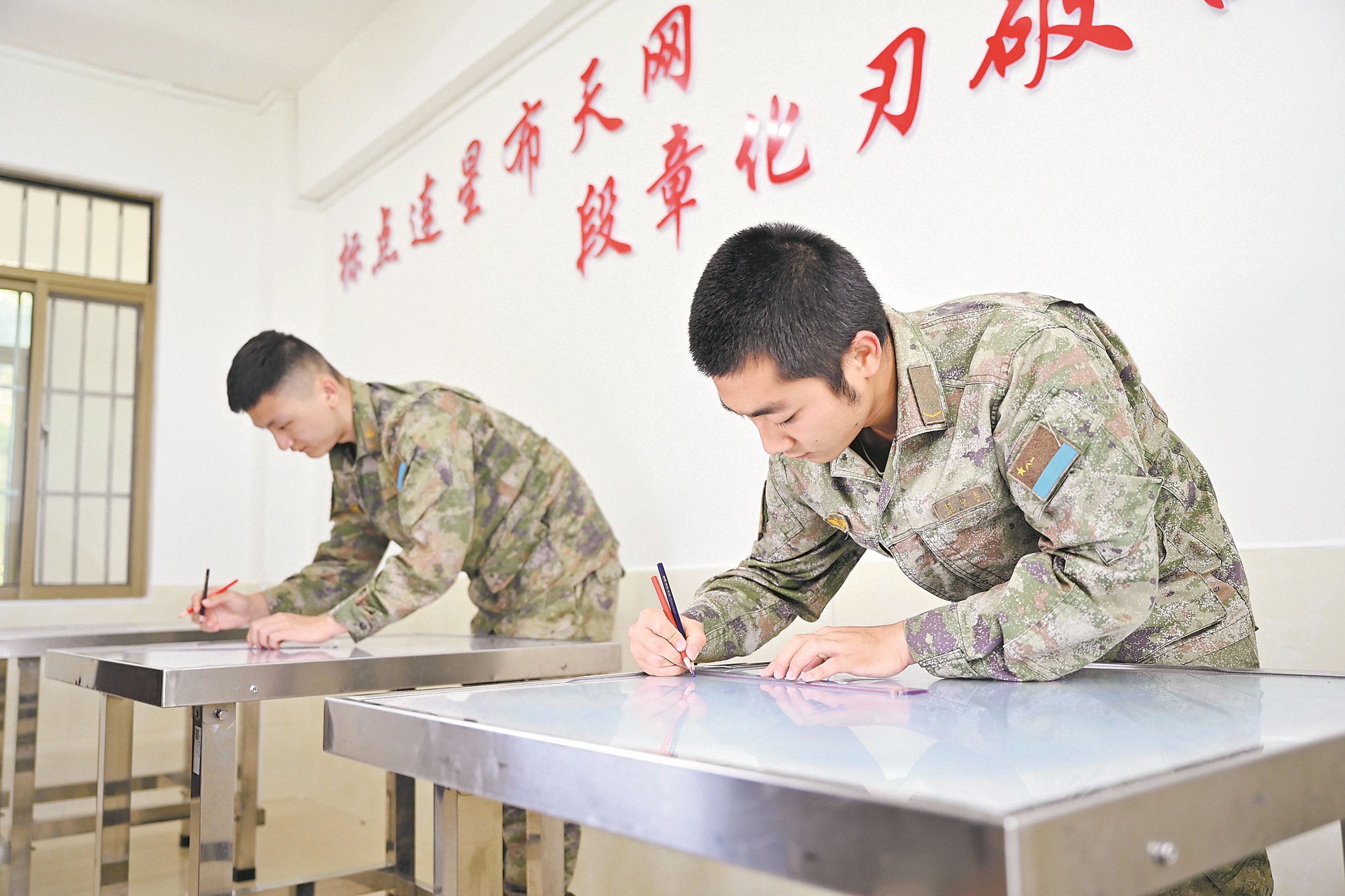 南部战区空军某雷达站官兵正在进行标图训练。