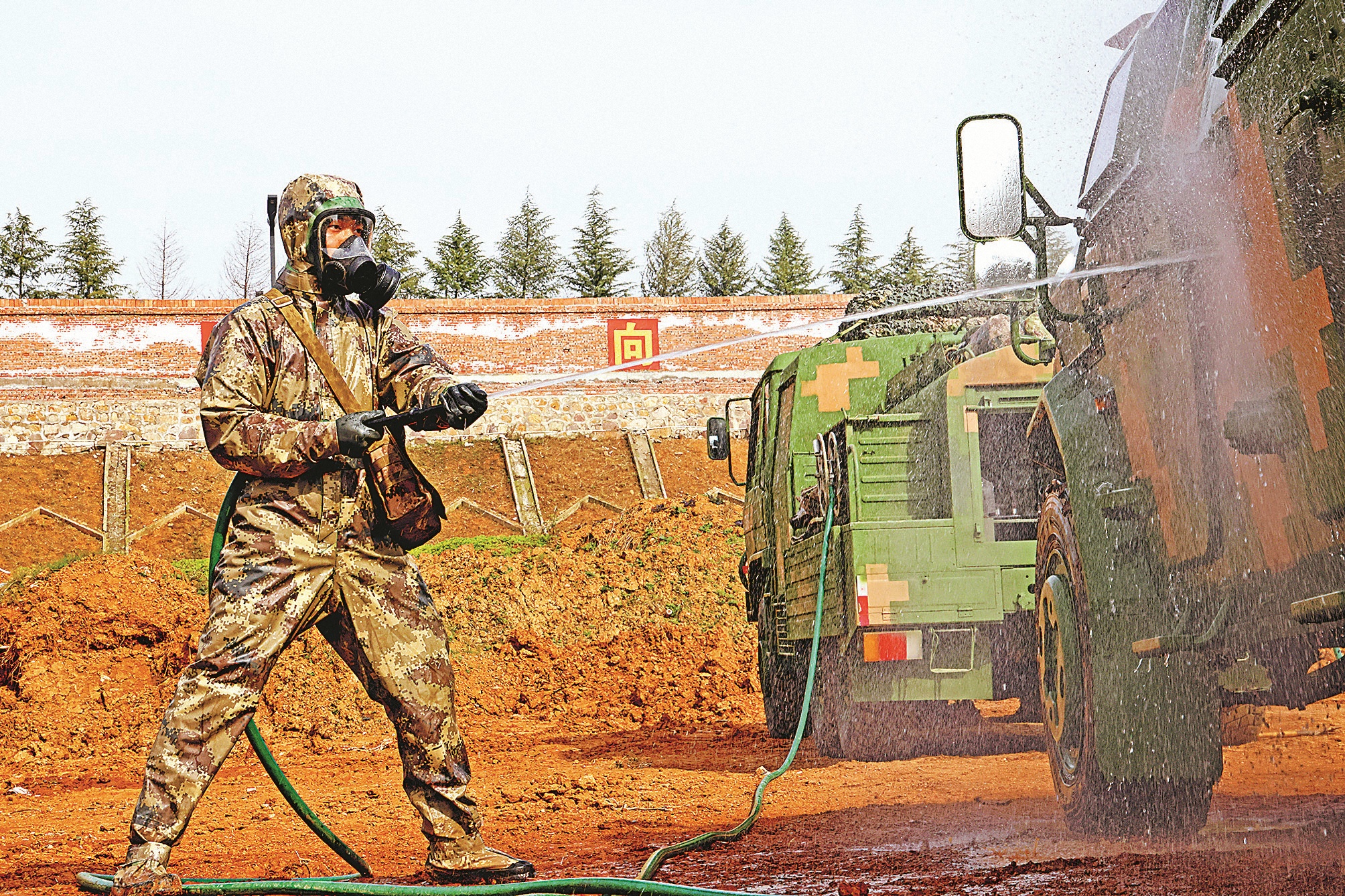 第83集团军某旅组织防化洗消训练。杨小伟 摄