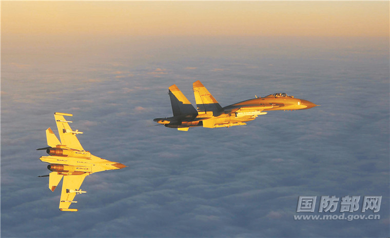空军航空兵某旅在暮色下的天空中展开对抗训练。刘应华 摄