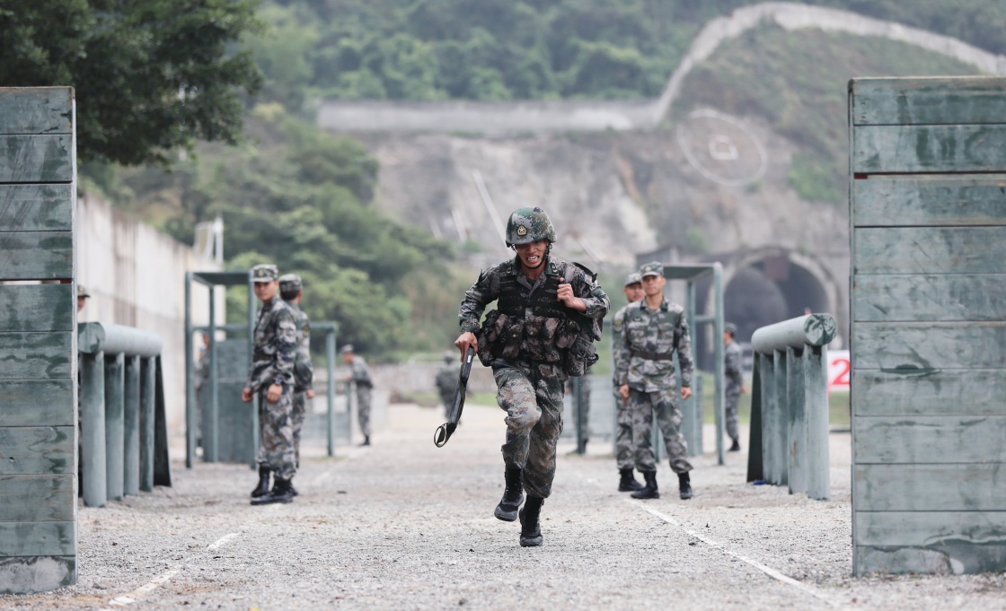 哨声中,全副武装五公里越野拉开了序幕,推车、越障、爬绳等课目接连而来,每个课目间隔时间不超过2分钟。随后,特战队员转移至攻击发起位置,限时组织多型枪支结合后向目标区域搜索前进,对临机出现的目标采取跪姿、立姿等多姿势进行短停射击。在模拟街区,特战队员受领“清剿据守恐怖分子、解救人质”任务后,采取多种方式攀登楼房、通过街道,向“恐怖分子”据守的建筑物持续渗透……