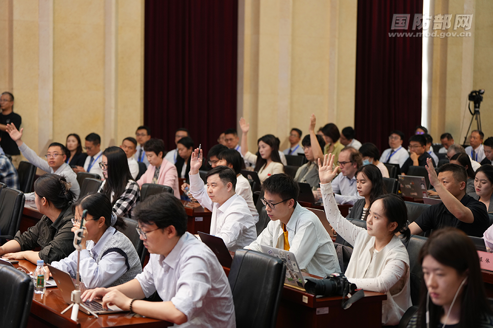 9月25日下午,国防部举行例行记者会,现场记者提问。孙悦 摄