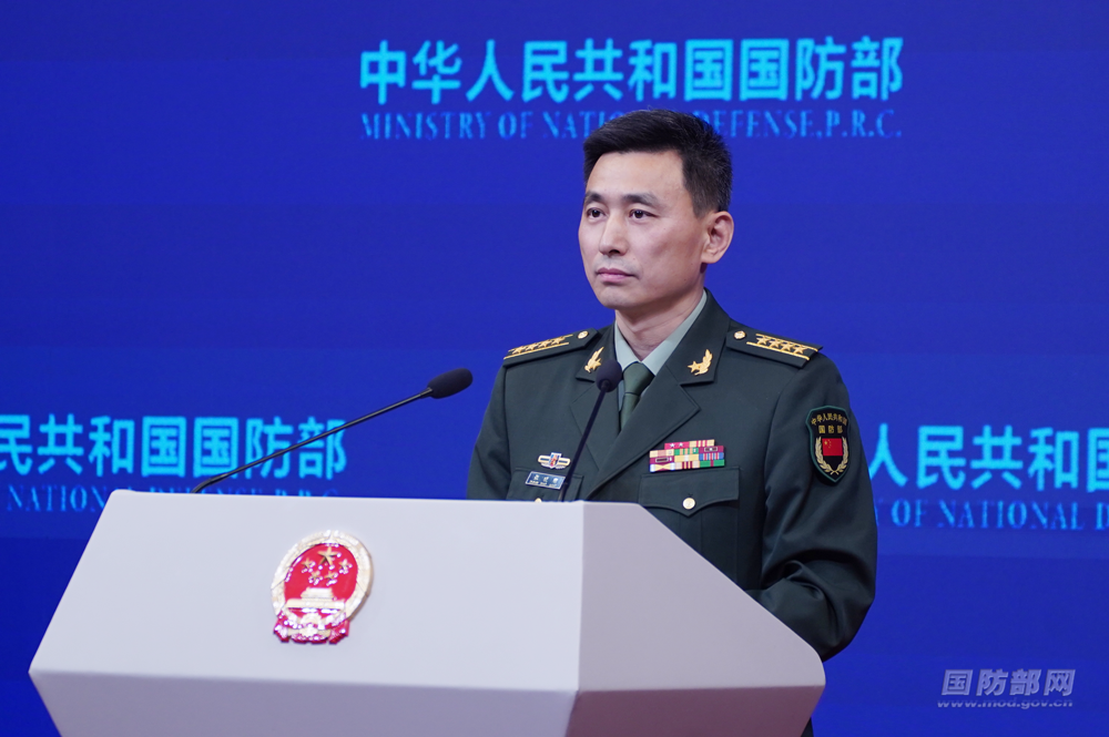 4月24日下午,国防部举行例行记者会,国防部新闻发言人张晓刚大校答记者问。