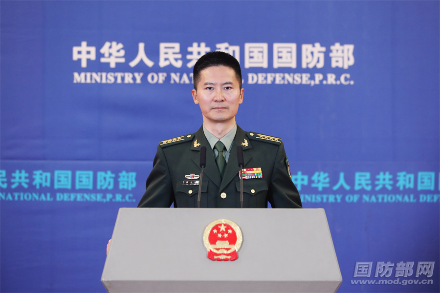 3月30日下午,国防部举行例行记者会,国防部新闻发言人谭克非大校答记者问。