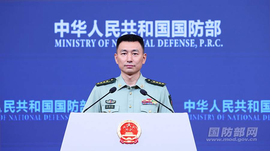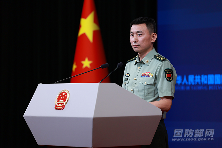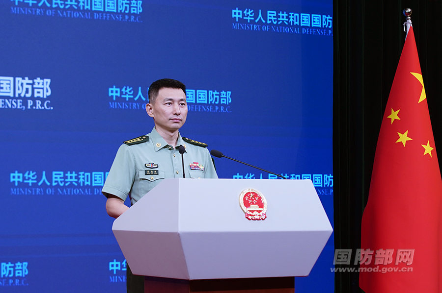 7月25日下午,国防部举行例行记者会,国防部新闻局副局长、国防部新闻发言人张晓刚大校答记者问。张智程 摄