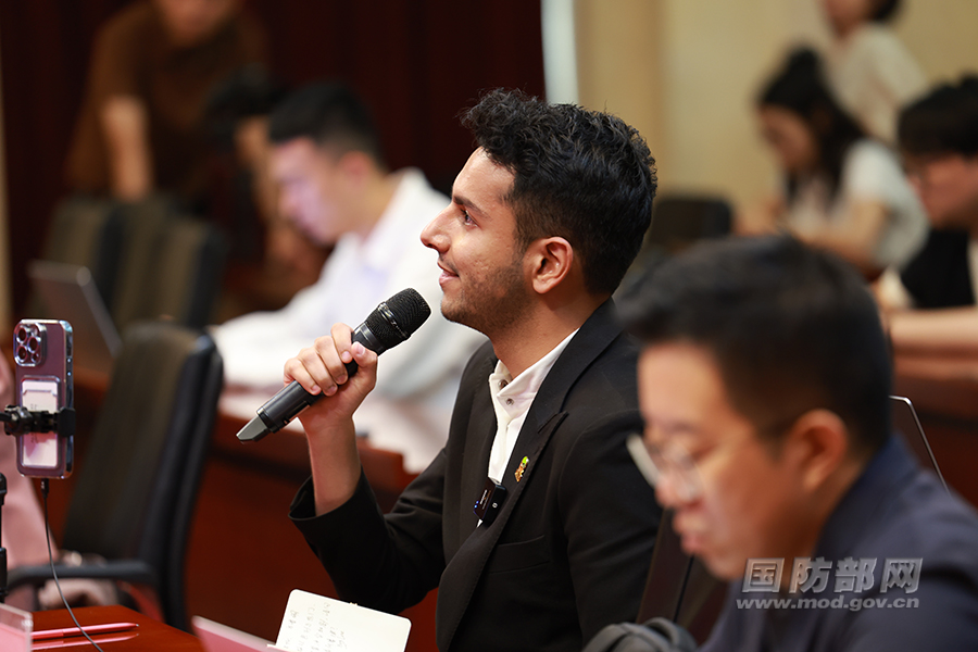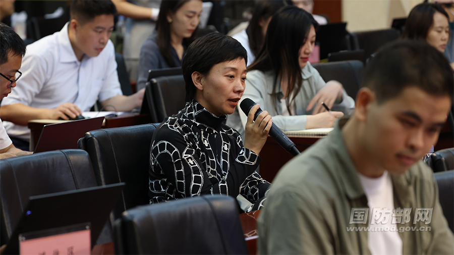 7月25日下午,国防部举行例行记者会,现场记者提问。张智程 摄